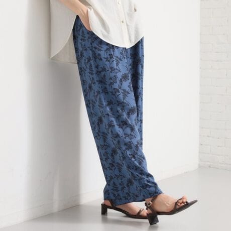 足元はフラットや華奢サンダルで抜け感を。色はトーンを揃えて、柄を主役にクリーンに仕上げて。
