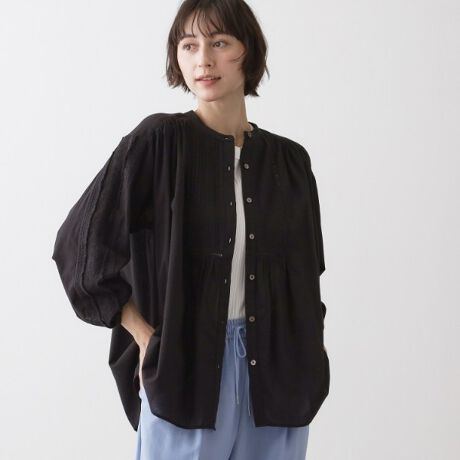 デニムやイージーパンツなどのカジュアルボトムスとのスタイリングはもちろん、麻調合繊のワイドパンツ等、ややきれいめなボトムスとのコーディネートとも好相性です。