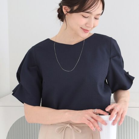 お袖にタックディティールが入っており、二の腕が自然にカバーできる半袖のブラウスです。