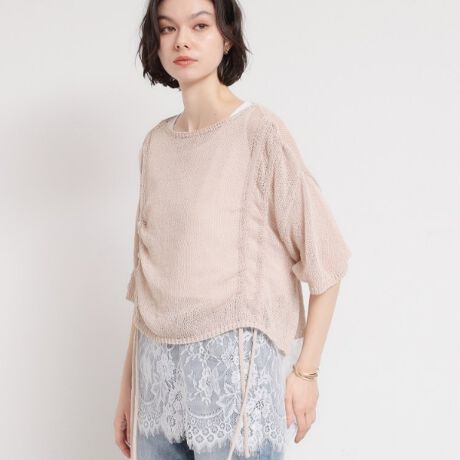 両サイドのドローストリングでギャザーを寄せ、今どきのシャーリングシルエットにアレンジできます。