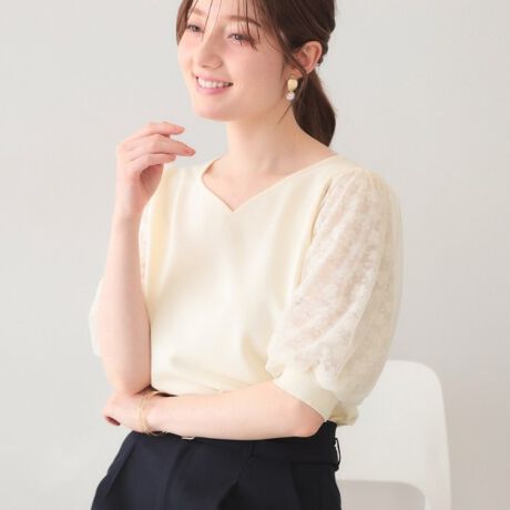 レーススリーブハートネックニット【洗濯機OK・UVケア・抗ピリング】