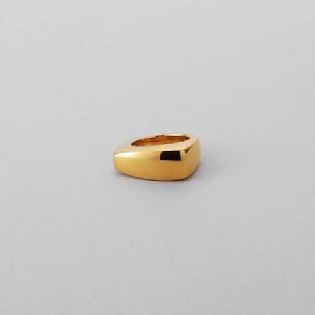 端正なトラペーズフォルムをシグネットデザインに落とし込んだ、力強い存在感のボリュームリング。