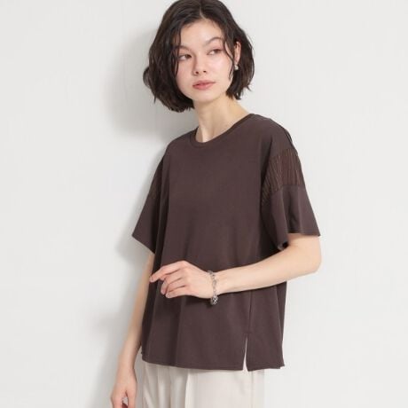 フレアスリーブの途中に程よいシアー切り替えを入れたTシャツ。