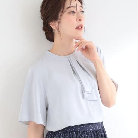 【洗濯機可S-LLUV】二の腕隠れる 吸水速乾 ボウタイ風なめらかブラウス