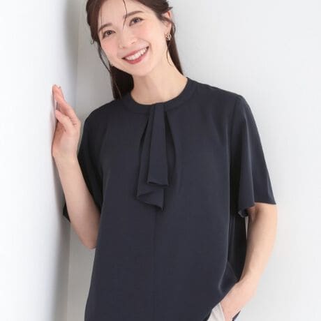 【洗濯機可S-LLUV】二の腕隠れる 吸水速乾 ボウタイ風なめらかブラウス