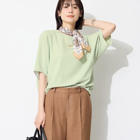 肘までをしっかりとカバーする、たっぷりのドルマンスリーブが特徴のブラウスです。