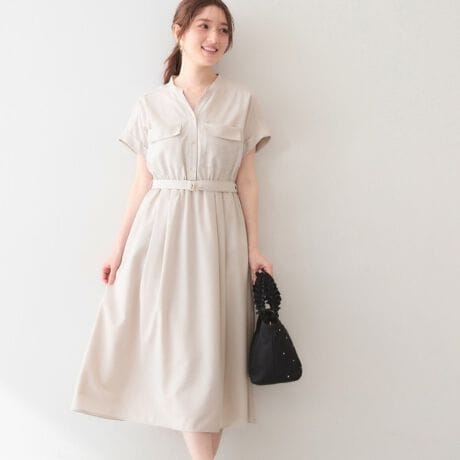 ・カジュアルときちんと感を両立したスキッパーシャツワンピース。