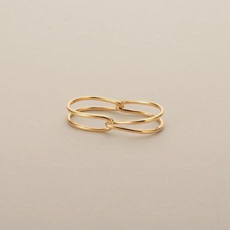 上下に配したノットモチーフデザインのダブルフィンガーリング。