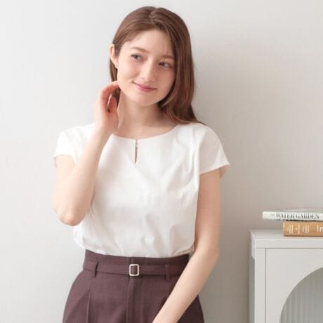 ・キーネックのデザインが首元をすっきり見せ、洗練された雰囲気を演出します。