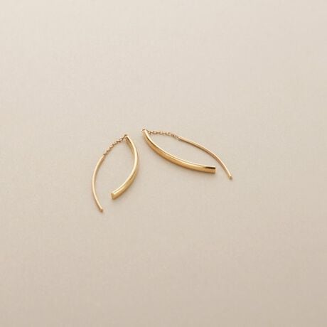 中空パイプをアーチ状に仕立て、前後に揺れる動きが印象的なピアス。