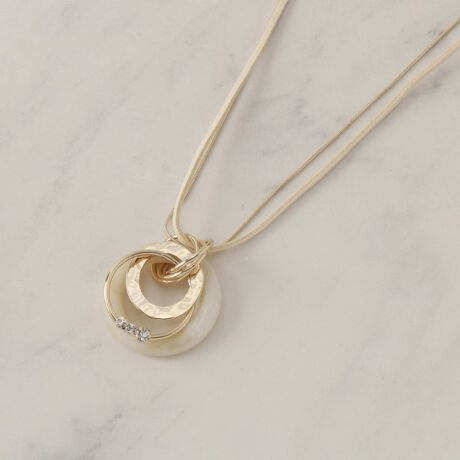 [型番:C7085034]紐とチェーンの2本使い。樹脂パーツとメタルモチーフを組み合わせた上品感あるネックレス。※照明の関係により、実際よりも色味が違って見える場合があります。また、パソコン・スマートフォンなどの環境により、若干製品と画像のカラーが異なる場合もございます。