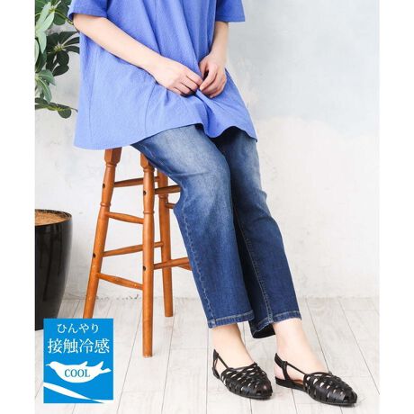暑い季節でも快適に穿ける、ストレッチ入りの接触冷感デニムパンツ。