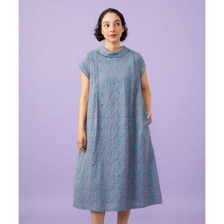 さらりとしたコットン100%素材に花柄の生地刺繍を施したワンピース。アイレット刺繍がほどよい透け感と上品な印象を後押しします。軽い着心地で、ロングシーズンお召しいただけます。
