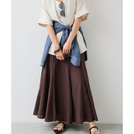 切替マチが立体的なフレアを創り出し、履いた時の綺麗なシルエットに一目ぼれするようなフレアスカートです。