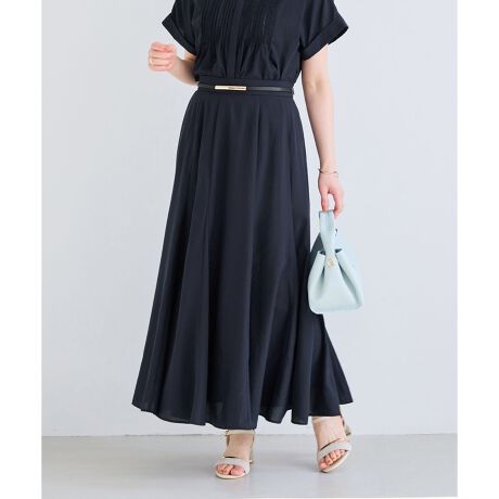 女性らしいカットソー、ニットトップスとのコーディネートがおすすめですが、気流染めピコピンタック半袖ブラウス(品番BVH36160)と合わせて、ワンピース風にコーディネートするのも◎。