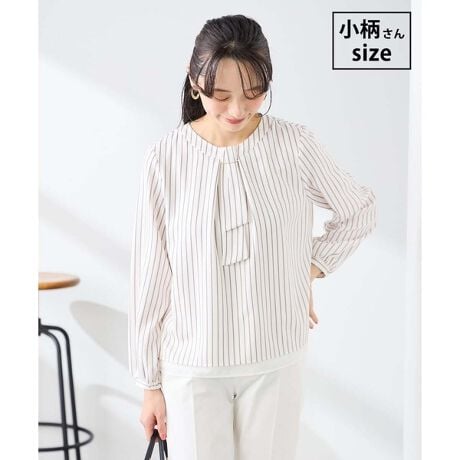 ボウタイは中にしまってプレーンなクルーネックブラウスとしても着こなし可能です。