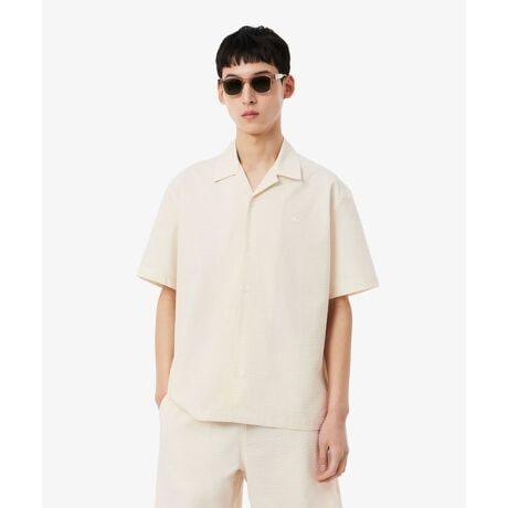 [型番:CH2355-10]凹凸感のあるシアサッカー素材を纏う、春夏に快適な開襟半袖シャツ・オーガニックコットンとリサイクルポリエステルを使用したシアサッカー素材・独特な凹凸感による肌離れで、汗ばむ季節も快適・抜け感を演出するオープンカラーデザイン・トレンドに寄り添うリラックスフィット・伸縮性のある快適な着心地・左胸にボディと同色のワニロゴパッチRELAXED FIT