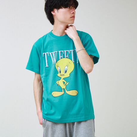 トゥイーティーを大胆に配置したグラフィックで、1枚でスタイリングが完成する主役級デザイン。