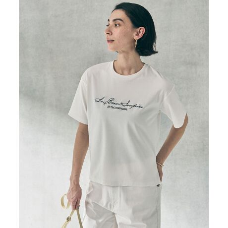 光沢のあるロゴ刺繍が、コーデのワンポイントになります。カジュアルすぎないスッキリとしたネックラインで、ゆとりがありながらも綺麗に見える絶妙なサイジングに。長めの半袖が、気になる二の腕もしっかりカバーしてくれます。カラーによって異なるロゴデザインなので、気分に合わせてお好みの色や柄をお選びいただけます。ロゴの文字は、一日を快適に過ごしていただけるような前向きな言葉をアレンジしています。
