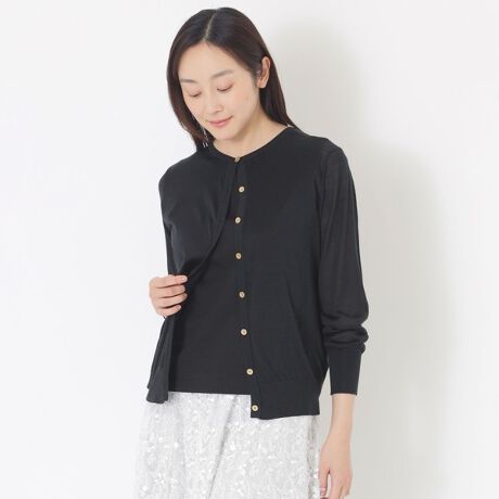 絹糸を、極細120番双糸で丁寧に編み立てた繊細なシアーカーディガン。