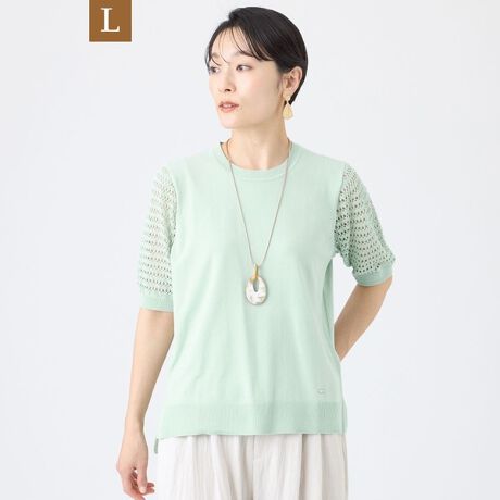 【L】【カタログ掲載・ウォッシャブル】クロッシングメッシュニットプルオーバー