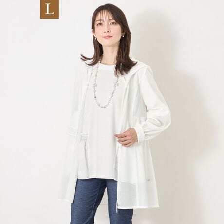 逆開ファスナーで足さばきがよく、チュニックやワンピースの上からもすっきり羽織れるロング丈のブルゾンです。ウエストには共布のドローストリングをあしらい、気分に合わせてシルエットを調整でき、上品な軽やかさを演出します。袖口はゴム入りで動きやすく、気温差のある時期にも快適。オンオフ問わず幅広いコーディネートに馴染む、使い勝手の良い一枚です。