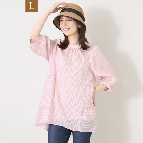 軽やかなシアー感と細かな凹凸が特徴で、今季らしいニュアンスあるスタイリングに仕上がります。