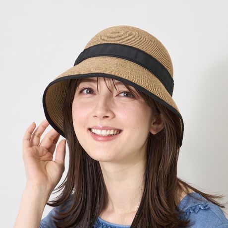 [型番:W5527727__]バックリボン ブレードハット国内生産で1点1点ポリエステルブレードを縫い合わせてつくりあげたシルエットの綺麗な帽子です。つばはやや下向きで上品なかたち、後ろにあしらったリボンが後ろ姿を一層可愛くみせてくれます。おしゃれに紫外線対策ができます。※この商品はサンプルでの撮影を行っています。実際の商品とイメージ、仕様が異なる場合がございます。