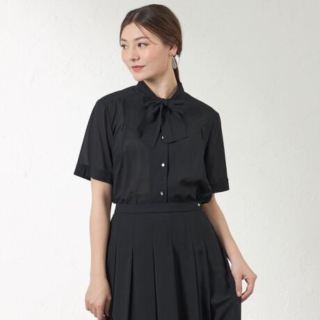 首元のボウタイが印象的な、きれいめな佇まいのブラウス。