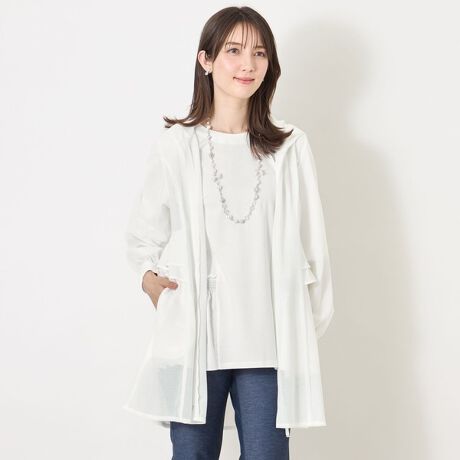 逆開ファスナーで足さばきがよく、チュニックやワンピースの上からもすっきり羽織れるロング丈のブルゾンです。ウエストには共布のドローストリングをあしらい、気分に合わせてシルエットを調整でき、上品な軽やかさを演出します。袖口はゴム入りで動きやすく、気温差のある時期にも快適。オンオフ問わず幅広いコーディネートに馴染む、使い勝手の良い一枚です。