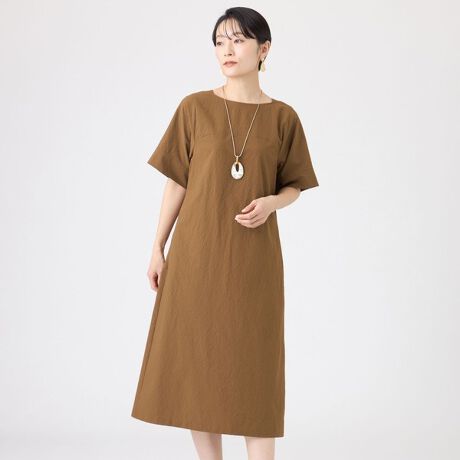 程よく体から離れるシルエットで、すっきり着られるワンピース。袖丈は短すぎず、腕まわりを自然にカバーします。広がりを控えめにしたことで上品にまとまり、シンプルでもきれいに見えるバランスに仕上げました。暑い日でも軽く着られる、デイリー向けの一枚です。