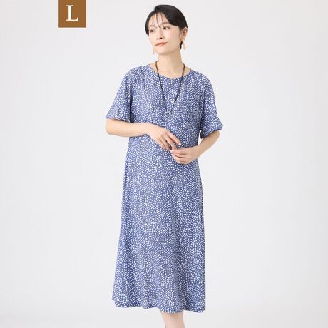 【L】【接触冷感・マシンウォッシャブル】ミニチータープリントコンチェロフレアスリーブワンピース
