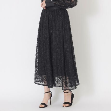 繊細なフェザーレースを贅沢に使用した、存在感のあるギャザースカート。