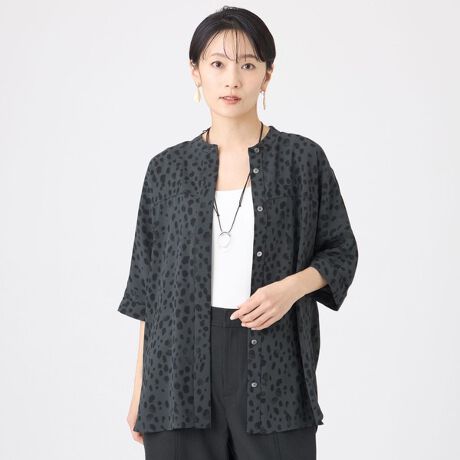オリジナルのチータードットプリントを施したポリエステル素材。適度な肉感と落ち感が魅力です。吸水速乾機能付きで、気温が高い時季にも快適に着用できます。