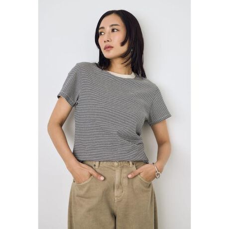 ■ミニボーダーTシャツ■ポイントシンプルでミニマルなデザインが魅力のベーシックなボーダーTシャツ。すっきりとしたシルエットで、デイリーに着回しやすい万能アイテムです。■ディテール身体のラインをきれいに見せるコンパクトなシルエットで、すっきりとした印象に。シンプルなクルーネックデザインで、1枚着としてはもちろんインナーとしても活躍します。ベーシックなデザインのため、シーズン問わずワードローブに取り入れやすい1枚です。■スタイリングデニムやカーゴパンツと合わせたカジュアルスタイルはもちろん、スラックスやスカートと合わせたきれいめスタイルにもおすすめ。ジャケットやシャツのインナーとしても使いやすく、幅広いスタイリングに対応します。シンプルだからこそ着回しが効き、デイリーに活躍するベーシックTシャツです。■生地16番というやや太めの糸を使った、ざっくりとしたドライな肌触りと、しっかりとした厚みが特徴です。8オンス前後の程よい肉感があり、カジュアルな風合いで型崩れしにくいため、日常使いの丈夫なアイテムに最適な素材です。透け感:なし裏 地:なし伸縮性:なし光沢感:なし[注意事項]※画像の商品はサンプルです。実際の商品と仕様、加工が若干異なる場合があります。※画像の商品は光の照射や角度、お使いのモニター環境により、実物と色味が異なる場合がございます。※着用、お取り扱いの際は、アテンションタグをご確認ください。