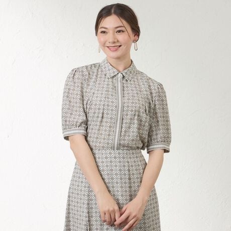 ダイヤ柄を引き立てる、すっきりとした印象のプリントブラウス。