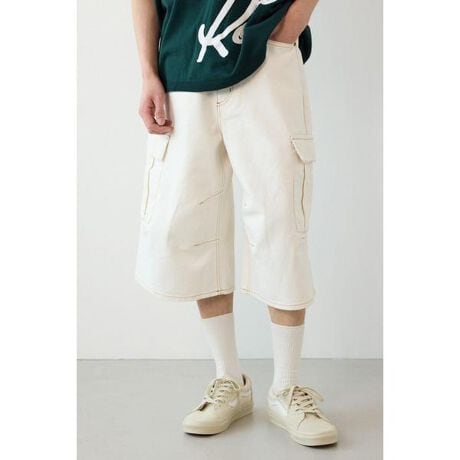 ■ポイントヴィンテージ加工を施したカーゴタイプのバミューダデニムパンツ。オールシーズン使えて男女共におすすめのアイテムです。■ディテール立体的なパターンを採用することで、膨らみのあるバルーンシルエットに仕上げました。ウエスト部分はドローコード仕様で、ベルト無しでも調整して着用できるのもポイントです。■スタイリングローライズで穿いてインナーパンツをチラ見せしたり、ハイウエストでブーツやソックスと合わせるスタイリングもおすすめです。ヴィンテージライクなデザインなので古着との相性はもちろん、韓国系やモード系、スポーツミックスとも好相性です。■生地デニム素材にヴィンテージ加工を施しています。■透け感:なし■裏 地:なし■伸縮性:なし■光沢感:なし※お取り扱い上のご注意加工や色味に多少のブレが生じる可能性がありますが、加工工程上避けられませんのでご了承ください。[注意事項]※画像の商品はサンプルです。実際の商品と仕様、加工が若干異なる場合があります。※画像の商品は光の照射や角度、お使いのモニター環境により、実物と色味が異なる場合がございます。※着用、お取り扱いの際は、アテンションタグをご確認ください。