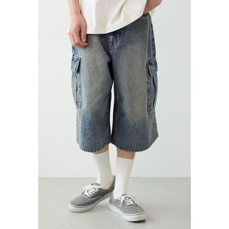 ■ポイントヴィンテージ加工を施したカーゴタイプのバミューダデニムパンツ。オールシーズン使えて男女共におすすめのアイテムです。■ディテール立体的なパターンを採用することで、膨らみのあるバルーンシルエットに仕上げました。ウエスト部分はドローコード仕様で、ベルト無しでも調整して着用できるのもポイントです。■スタイリングローライズで穿いてインナーパンツをチラ見せしたり、ハイウエストでブーツやソックスと合わせるスタイリングもおすすめです。ヴィンテージライクなデザインなので古着との相性はもちろん、韓国系やモード系、スポーツミックスとも好相性です。■生地デニム素材にヴィンテージ加工を施しています。■透け感:なし■裏 地:なし■伸縮性:なし■光沢感:なし※お取り扱い上のご注意加工や色味に多少のブレが生じる可能性がありますが、加工工程上避けられませんのでご了承ください。[注意事項]※画像の商品はサンプルです。実際の商品と仕様、加工が若干異なる場合があります。※画像の商品は光の照射や角度、お使いのモニター環境により、実物と色味が異なる場合がございます。※着用、お取り扱いの際は、アテンションタグをご確認ください。