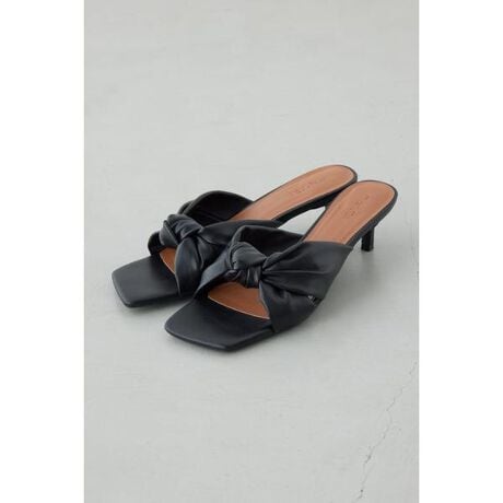 ■ノットミュール■ポイント立体的なノット(結び目)デザインが印象的なミュール。甘さを抑えたフォルムで、足元をすっきりと上品に見せる一足です。■ディテールアッパーにあしらったボリューム感のあるノットがアクセントになり、シンプルな中に程よい存在感をプラス。ややスクエア寄りのトゥデザインが甘さを中和し、洗練された印象に仕上げています。安定感があり、長時間の着用でも快適な履き心地。ミニマルな設計により、素材の質感とシルエットの美しさが際立つデザインです。■スタイリングデニムやワイドパンツに合わせてカジュアルダウンするのはもちろん、ミニ丈ボトムやワンピースと合わせてフェミニンにまとめるのもおすすめ。モノトーンコーディネートに取り入れれば、足元にさりげない華やかさをプラスできます。※お取り扱い上のご注意濡れたまま放置したり、他の素材と密着させないように保管してください。素材成分によっては移染することがあります。[注意事項]※画像の商品はサンプルです。実際の商品と仕様、加工が若干異なる場合があります。※画像の商品は光の照射や角度、お使いのモニター環境により、実物と色味が異なる場合がございます。※着用、お取り扱いの際は、アテンションタグをご確認ください。