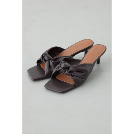 ■ノットミュール■ポイント立体的なノット(結び目)デザインが印象的なミュール。甘さを抑えたフォルムで、足元をすっきりと上品に見せる一足です。■ディテールアッパーにあしらったボリューム感のあるノットがアクセントになり、シンプルな中に程よい存在感をプラス。ややスクエア寄りのトゥデザインが甘さを中和し、洗練された印象に仕上げています。安定感があり、長時間の着用でも快適な履き心地。ミニマルな設計により、素材の質感とシルエットの美しさが際立つデザインです。■スタイリングデニムやワイドパンツに合わせてカジュアルダウンするのはもちろん、ミニ丈ボトムやワンピースと合わせてフェミニンにまとめるのもおすすめ。モノトーンコーディネートに取り入れれば、足元にさりげない華やかさをプラスできます。※お取り扱い上のご注意濡れたまま放置したり、他の素材と密着させないように保管してください。素材成分によっては移染することがあります。[注意事項]※画像の商品はサンプルです。実際の商品と仕様、加工が若干異なる場合があります。※画像の商品は光の照射や角度、お使いのモニター環境により、実物と色味が異なる場合がございます。※着用、お取り扱いの際は、アテンションタグをご確認ください。