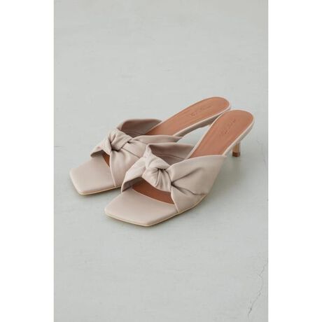 ■ノットミュール■ポイント立体的なノット(結び目)デザインが印象的なミュール。甘さを抑えたフォルムで、足元をすっきりと上品に見せる一足です。■ディテールアッパーにあしらったボリューム感のあるノットがアクセントになり、シンプルな中に程よい存在感をプラス。ややスクエア寄りのトゥデザインが甘さを中和し、洗練された印象に仕上げています。安定感があり、長時間の着用でも快適な履き心地。ミニマルな設計により、素材の質感とシルエットの美しさが際立つデザインです。■スタイリングデニムやワイドパンツに合わせてカジュアルダウンするのはもちろん、ミニ丈ボトムやワンピースと合わせてフェミニンにまとめるのもおすすめ。モノトーンコーディネートに取り入れれば、足元にさりげない華やかさをプラスできます。※お取り扱い上のご注意濡れたまま放置したり、他の素材と密着させないように保管してください。素材成分によっては移染することがあります。[注意事項]※画像の商品はサンプルです。実際の商品と仕様、加工が若干異なる場合があります。※画像の商品は光の照射や角度、お使いのモニター環境により、実物と色味が異なる場合がございます。※着用、お取り扱いの際は、アテンションタグをご確認ください。