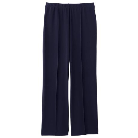 まるで布帛のような美しい表面感を持ちながら、ジャージー素材ならではの快適な着心地を両立したパンツ。ソフトで落ち感のあるスムース素材が、しなやかなドレープを生み出し、エレガントなシルエットを描きます。優れたストレッチ性を備えているため、立ち座りや歩行もスムーズ。ウエスト部分はゴム仕様になっており、締め付け感のないリラクシーなはき心地を一日中キープします。きちんと感があるため、ブラウスと合わせてお仕事に、カットソーと合わせて休日のリラックススタイルにと、オンオフ問わず活躍。ご自宅で手軽にお手入れができるのも、これからの季節に嬉しいポイントです。