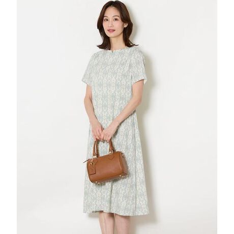 定番人気のフィットアンドフレアシルエットの半袖ワンピース。ウエストから自然に広がるラインが美しく、女性らしいシルエットを演出します。襟ぐりにはさりげない刻みとパイピングを施し、顔まわりのアクセントに。華やかなプリントながら上品にまとまり、オケージョンシーンにも対応するきれいめデザインです。裏地あり。ポケットなし。