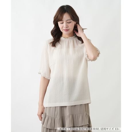 首元をすっきりと品良く見せる、スタンドカラーの半袖カットソー。ジャケットのインナーとして着用した際に、襟元が美しく決まるのが魅力です。もちろん一枚で着ても、きちんとした印象を与えてくれます。シンプルな無地のデザインは、どんなボトムスとも相性が良く、コーディネートの基盤として活躍。ご自宅で簡単にお手入れができるので、汗をかきやすい季節にも気兼ねなくお召しいただけます。オフィスから普段使いまで、オンオフ問わず着回せる、信頼できるベーシックアイテムです。