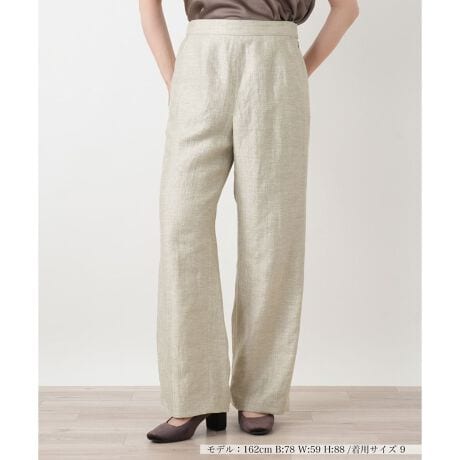 麻にナイロンをブレンドした、清涼感溢れるワッシャーワイドパンツです。麻特有のナチュラルな風合いに、ナイロンのしなやかさをプラスすることで軽やかな穿き心地を実現しました。ウエストは後ろ部分のみをゴム仕様にすることでフロントはすっきりと見せつつ、リラックスしたフィット感をキープ。広がりすぎない絶妙なワイドシルエットで脚のラインを拾いにくく、こなれた大人のカジュアルスタイルを演出。これからの春夏シーズンの多彩なシーンで重宝しそうな一本です。