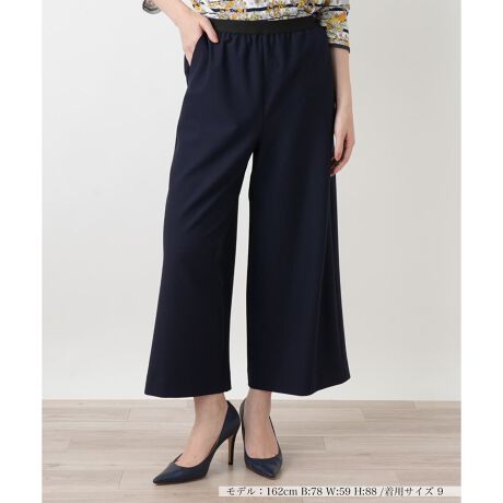 やや薄手の軽やかなストレッチ素材を使用したワイドパンツです。動きを妨げず、アクティブなシーンでもストレスフリーな穿き心地を実現します。ウエストは総ゴム仕様になっており、お腹周りを締め付けず快適なフィット感をキープ。広がりすぎないストレート寄りのリラックスシルエットが脚のラインを美しくカバーしつつ、都会的で洗練された印象を演出。シンプルなデザインで合わせるトップスを選ばず、オンオフ問わずデイリーに活躍する一本です。