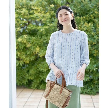 フランスの老舗テキスタイルメーカーDEVEAUX(デヴォー)社の生地を使用した、爽やかな印象のブラウス。