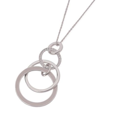 趣の異なるリングを重ね合わせ、涼やかさとモダンな奥行きを演出した多連リングネックレスです。アンティークな質感の真鍮が胸元にクラス感を生み出し、存在感のあるマットな幅広リングと小ぶりなビジューをあしらった繊細なリングのコントラストもポイント。これからの季節のシンプルなコーディネートに一点投入するだけで、都会的でこなれた印象をプラスしてくれる注目度の高いアクセサリーです。