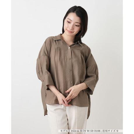 肩のラインを落としたドロップショルダーと、前後にタックを施したボリュームシルエットが目を惹くブラウスです。裾は後ろを長く設定したテールカットヘムに仕上げ、気になる腰回りをカバーしつつ、初夏らしい軽やかなニュアンスに。身頃や手元に立体的なふくらみを持たせ、大人のリラックス感と女性らしさを両立。さらりとした生地感で快適な着心地をキープできるのも嬉しいポイントです。一枚でサマになり、細身のパンツからワイドボトムまで幅広いスタイリングを旬な表情に演出してくれます。