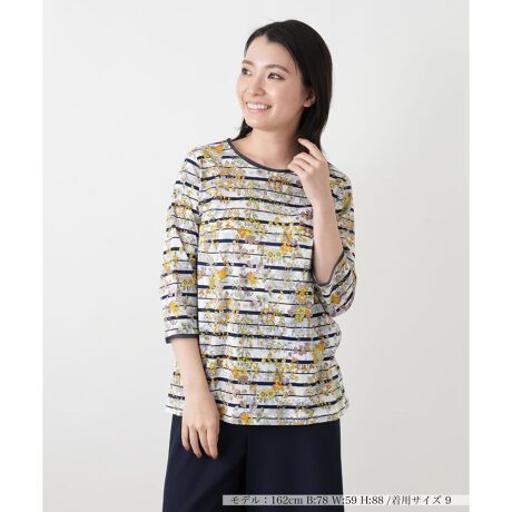 花柄ボーダー七分袖カットソー【Leilian WHITE LABEL】